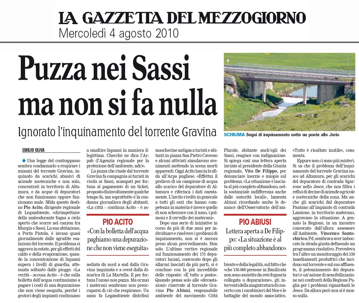[ Pio Abiusi Responsabile ambiente Città Plurale- Matera - Matera, 3 Agosto 2010]