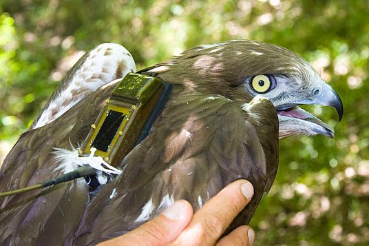 Grazie a un progetto finanziato dall’Osservatorio Faunistico della Regione Basilicata e dall’Università di Alicante (Spagna), nel mese di luglio del 2010 sono stati marcati con trasmittenti GPS/Argos per la prima volta in Italia due giovani Bianconi (Circaetus gallicus), nel Parco Gallipoli Cognato Piccole Dolomiti Lucane. Ai Bianconi sono stati dati i nomi di Nic e Biagio. Le trasmittenti, dal peso di 45g (meno del 3% del peso delle aquile) funzionano tramite telemetria satellitare, una tecnica attraverso la quale è possibile seguire le migrazioni degli uccelli attraverso piccole radio alimentate da pannelli solari. Questi strumenti, che sono stati applicati tramite un leggerissimo “zainetto” pochi giorni prima che le giovani aquile si involassero dal nido, inviano dei dati (coordinate, ora e data) che sono poi scaricabili da internet. Il Biancone è un’aquila che nidifica in ambienti mediterranei, si nutre quasi esclusivamente di serpenti, e trascorre l’inverno prevalentemente in Africa. Il sistema GPS consente di localizzare i bianconi con precisione e quindi di valutare le rotte di migrazione utilizzate per attraversare il Mediterraneo e il Sahara, nonché di determinare le aree di svernamento in Africa tropicale. Con pochi mesi di vita le giovani aquile dovranno quindi affrontare un viaggio di migliaia di chilometri, sorvolando barriere naturali come il mare e il deserto, caratterizzate da ambienti ben diversi da quelli della Basilicata, in cui hanno trascorso i primi mesi di vita. In questa pagina sarà possibile seguire sulle mappe gli spostamenti dei Bianconi. La riproduzione dei contenuti di questa pagine e la relativa citazione sono consentite solo su autorizzazione degli enti finanziatori (Parco Gallipoli Cognato Piccole Dolomiti Lucane - Università di Alicante, Spagna). Per informazioni è possibile contattare Ugo Mellone (ugomellone@libero.it) o info@parcogallipolicognato.it