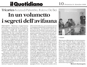 Il 19 dicembre prossimo sarà presentato a Tricarico presso il Palazzo Ducale il volume "Ricerca e conservazione dell'avifauna del territorio di Tricarico" di Gianni Palumbo, Egidio Fulco, Alessandro De Bei. Si tratta della sintesi di alcune ricerche condotte nel territorio di Tricarico e finanziate dalla Regione Basilicata e dal comune stesso. La scelta di quel territorio rientra nel fatto che fa parte dell'IBA (Important Bird Area) n. 137 "Dolomiti di Pietrapertosa" e quindi rappresenta la naturale estensione dalla limitrofa ZPS.