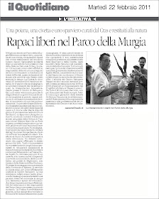 Sabato 19 febbraio nel Parco della Murgia Materana uno Sparviero, una Poiana ed una Civetta, tre splendidi rapaci che vivono stabilmente nel territorio lucano, hanno riacquistato la libertà dopo un periodo di cure presso il Centro Recupero Animali Selvatici della Riserva Naturale di San Giuliano. Gli animali erano stati affidati ai responsabili della struttura a seguito del loro ritrovamento in condizioni di totale difficoltà, quasi certamente destinati alla morte se non fossero stati soccorsi in tempo.