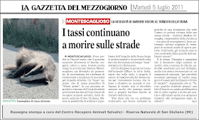Rassegna stampa " I tassi continuano a morire sulle strade"